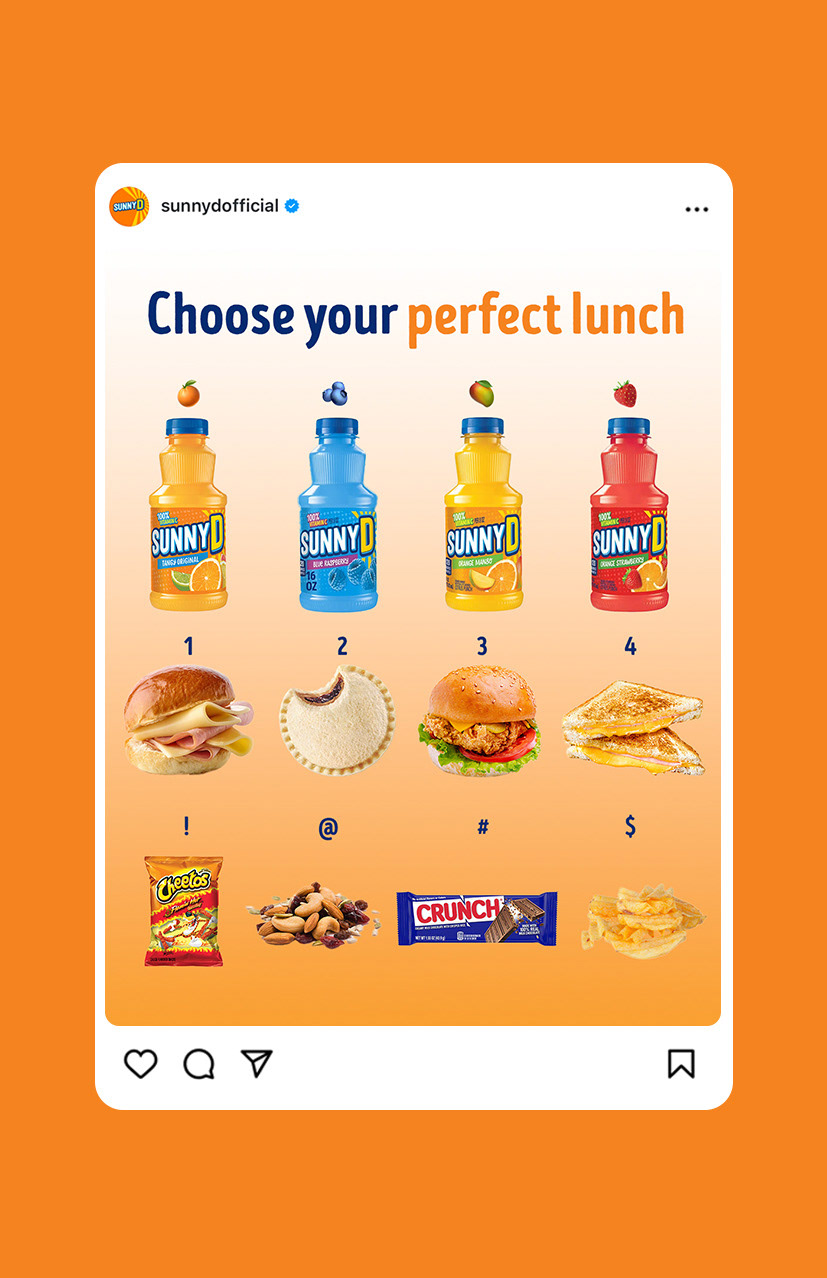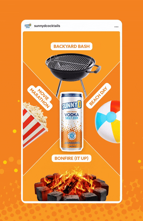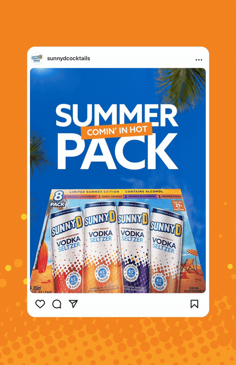 Content created for SunnyD and SunnyD Vodka Seltzer's social channels including Instagram stories, in-feed posts, and reels.