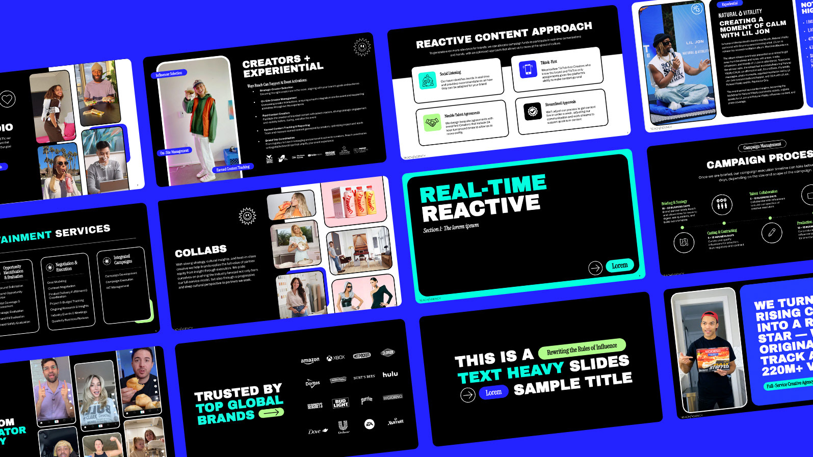 I was given the opportunity to refresh and modernize the look & feel of Reach Agency. This included bento box layouts, bright and vibrant colors, bold typography, and a social forward catalog of icons.
