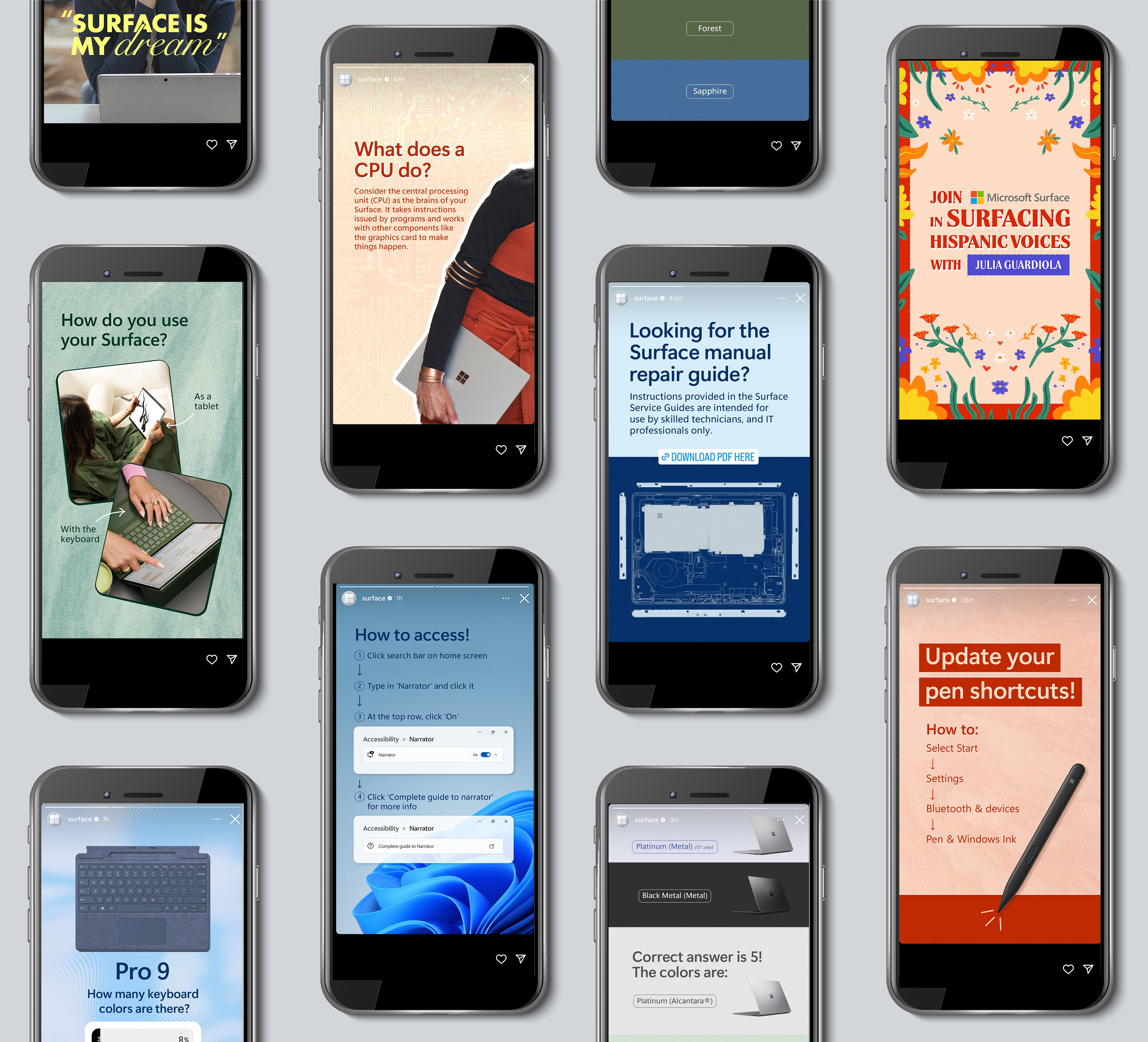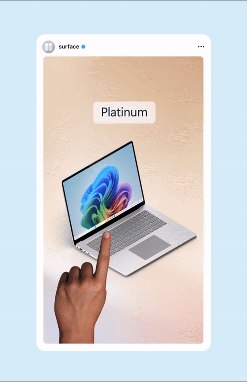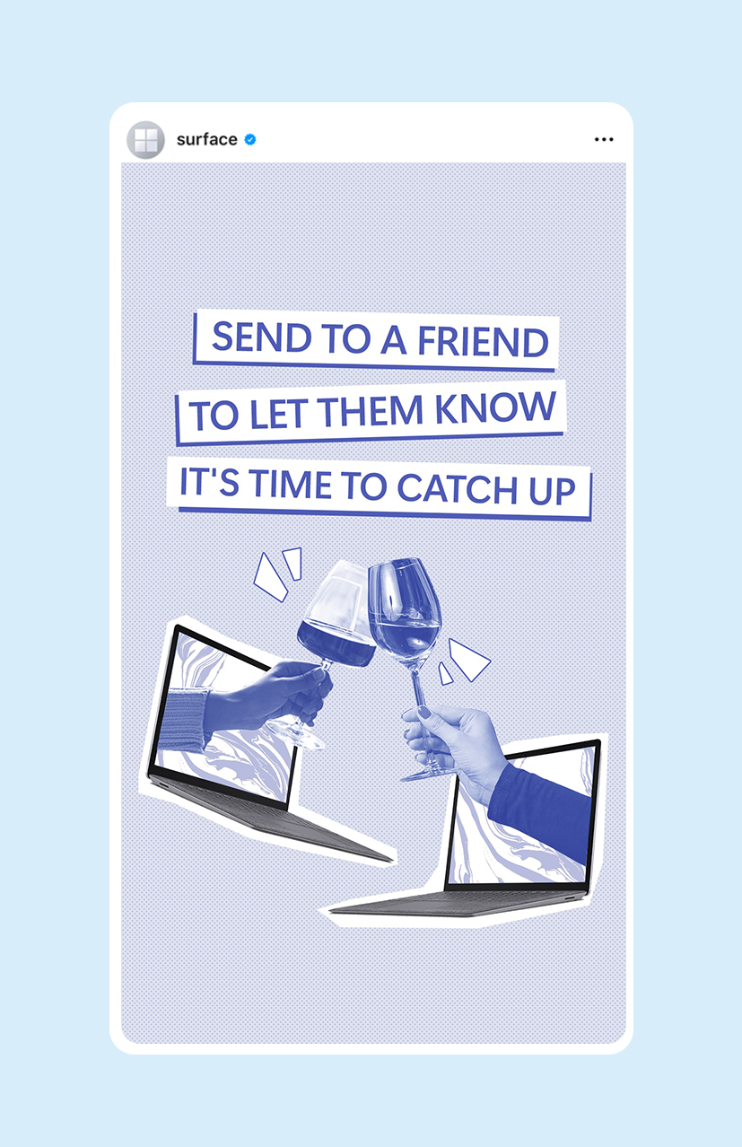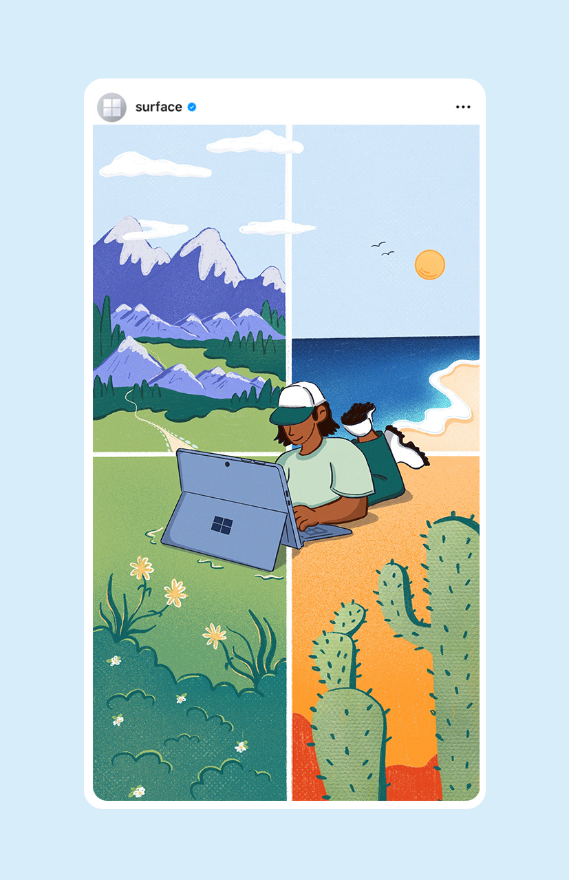 Content created for Microsoft Surface and Microsoft 365's social channels including Instagram stories, in-feed posts, and reels.