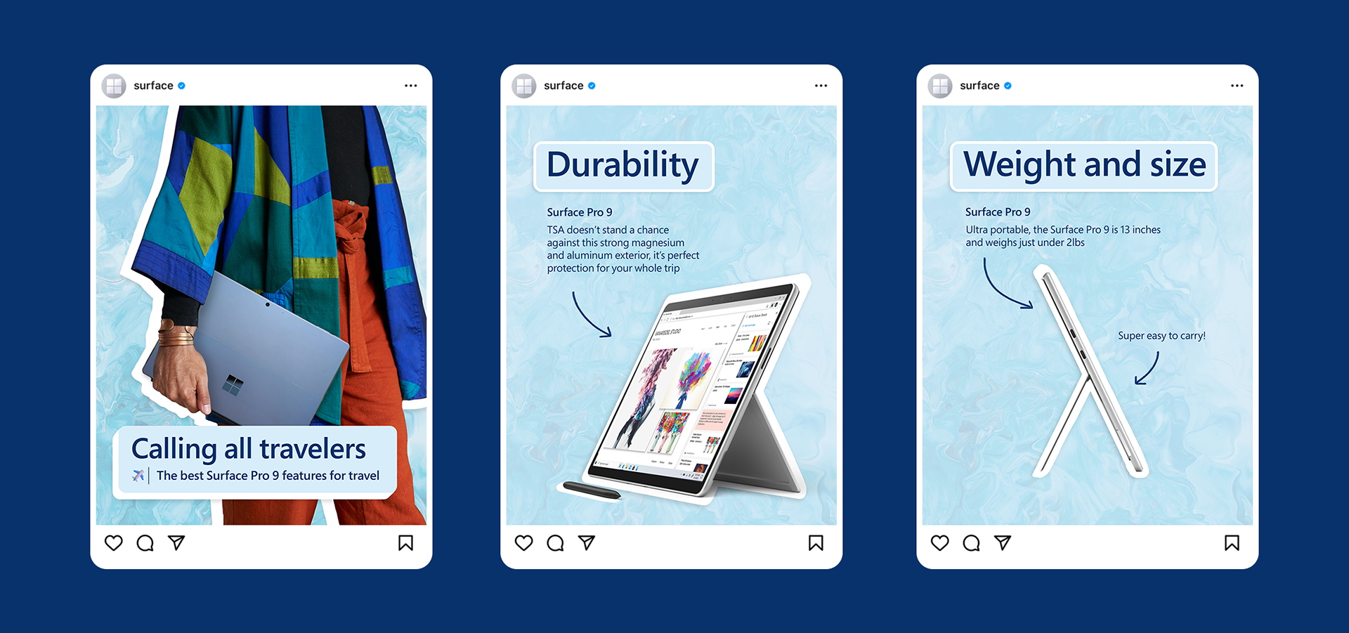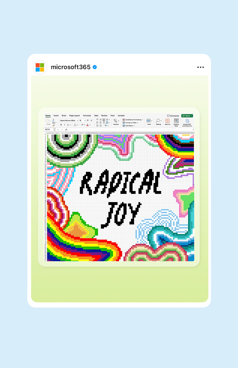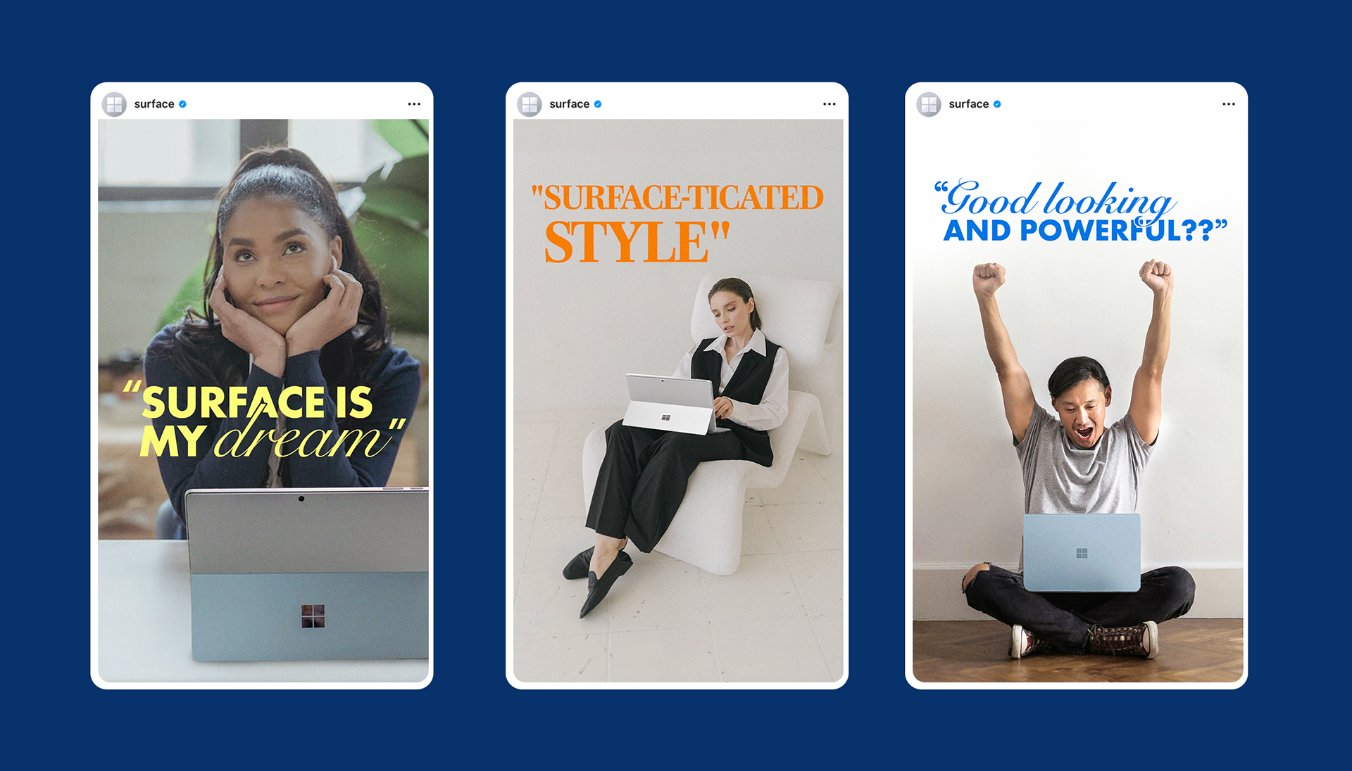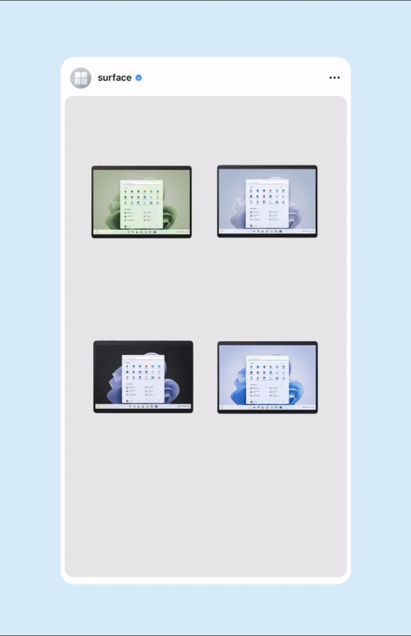 Content created for Microsoft Surface and Microsoft 365's social channels including Instagram stories, in-feed posts, and reels.