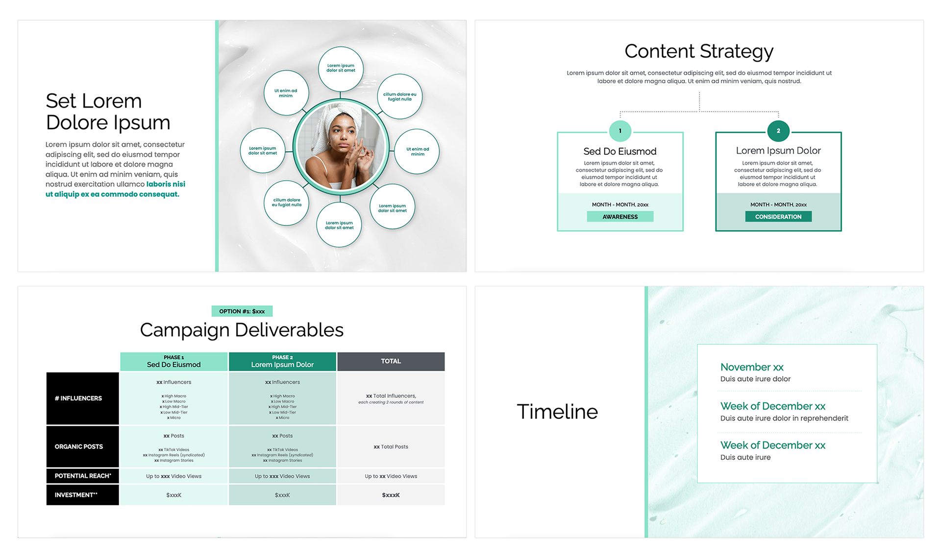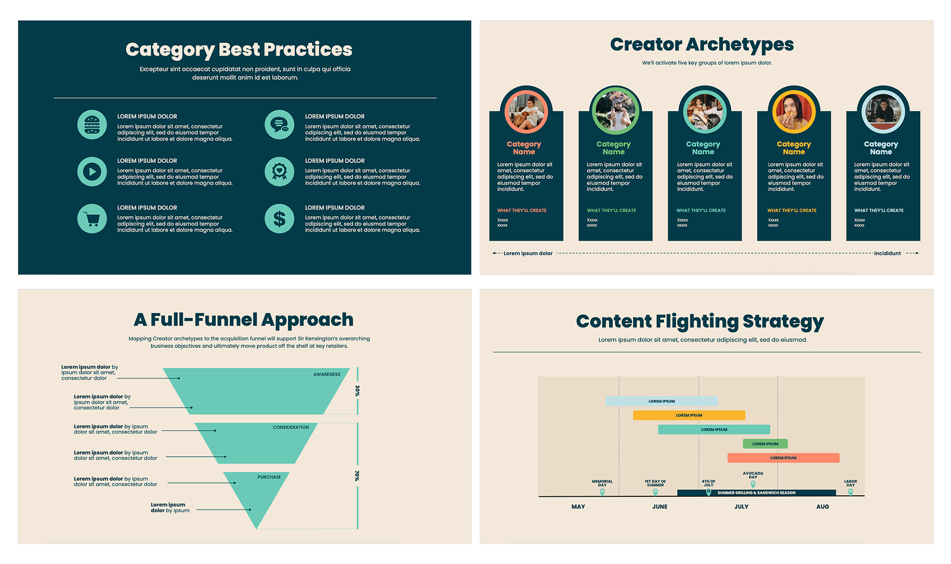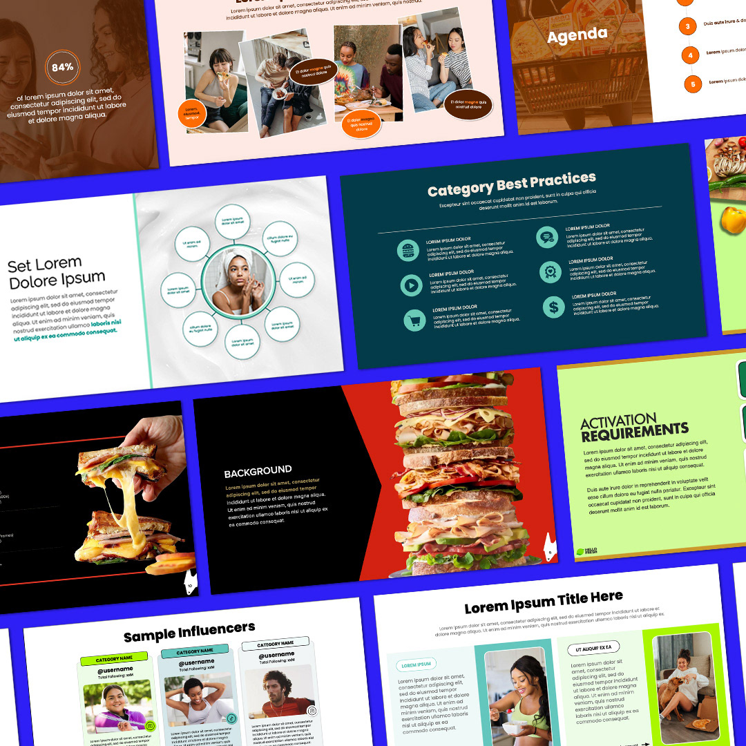 Presentation design using a variety of deck building programs including: Keynote, Google Slides, and Microsoft PowerPoint. Placeholder text has been used to protect confidentiality.